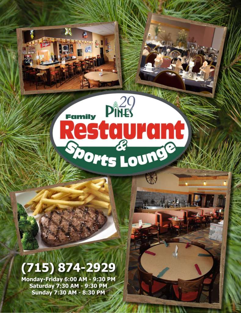 Menu Of 29 Pines Family Restaurant Sports Lounge Chippewa Falls Eau Claire